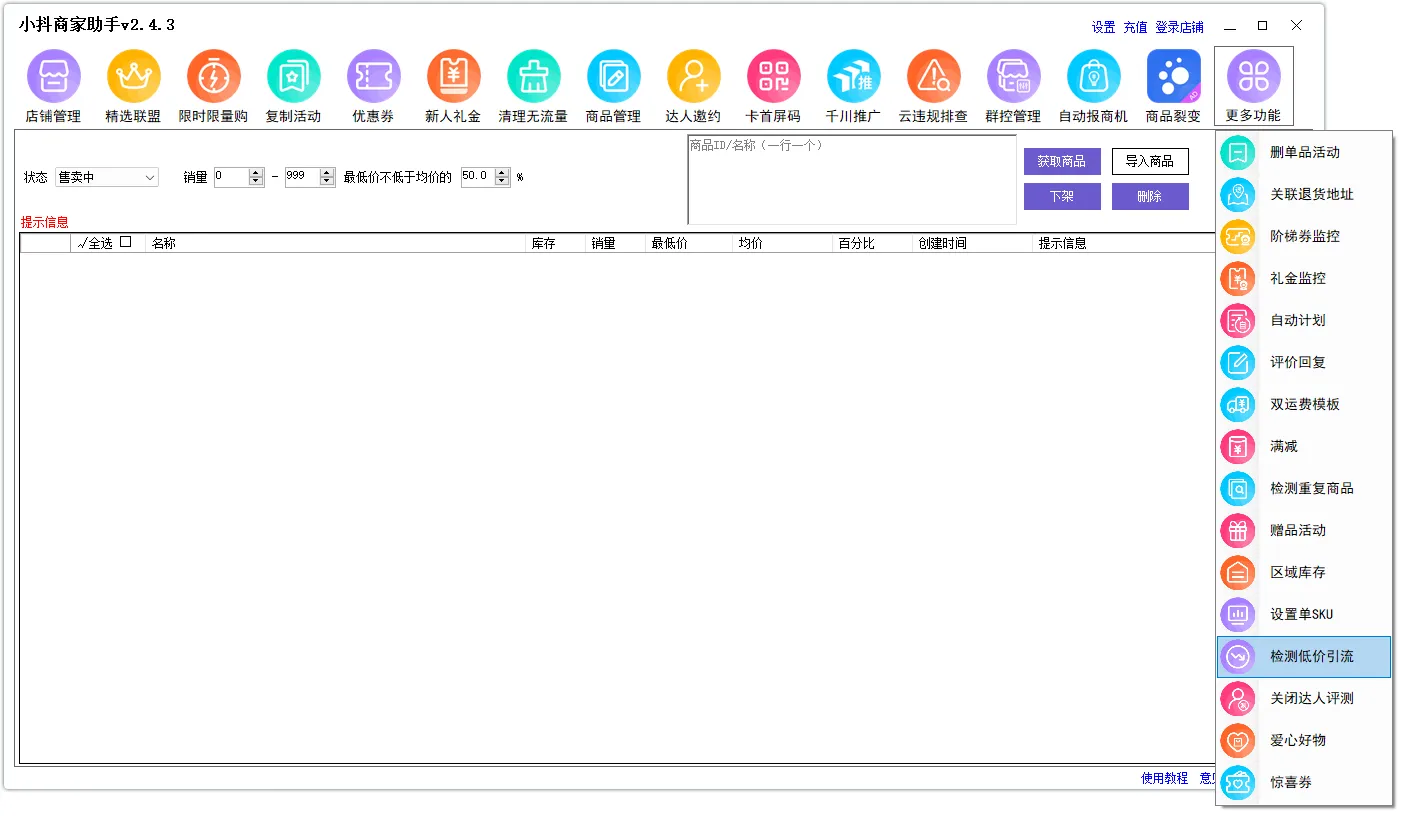 点了“获取商品”之后,一下子全出来了,库存、销量、最低价,全排好。
